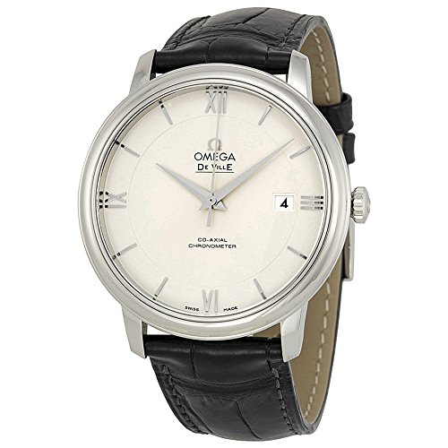 -. Title : Omega De Ville Prestige Silver Dial Black Leather Mens Watch 424.13.40.20.02.001