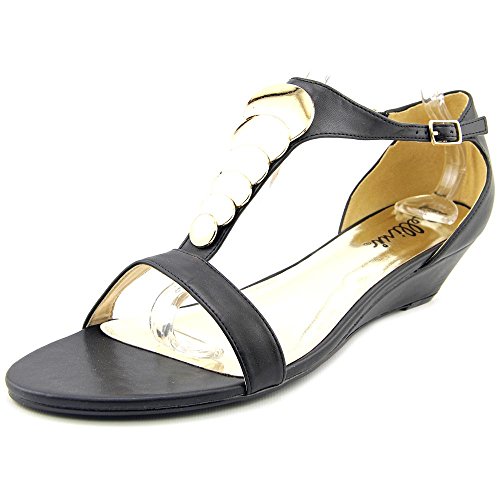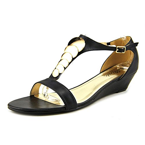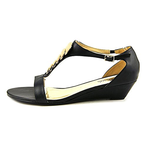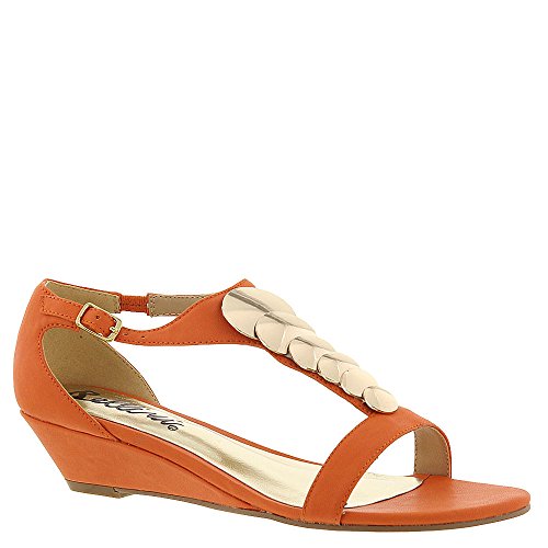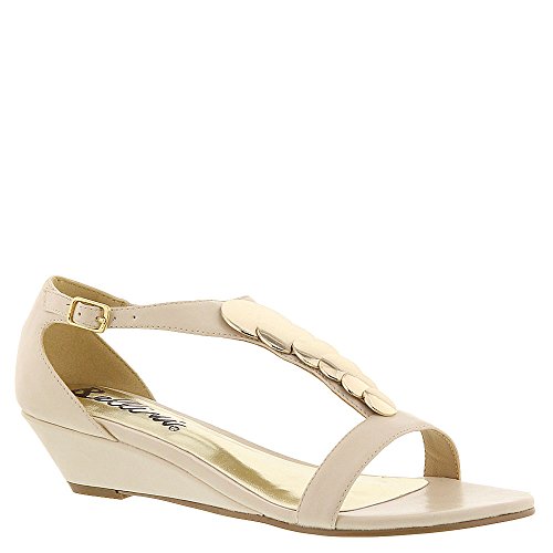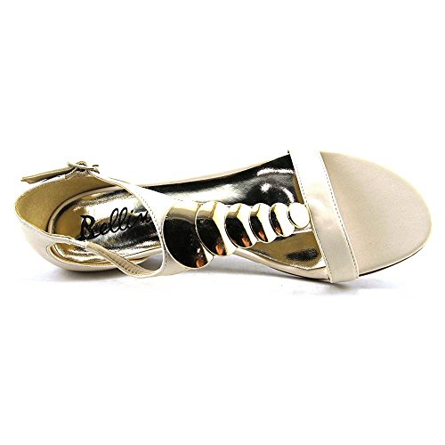 Studio : Bellini Publisher : Bellini Binding : Apparel Product Description Give your look a lift in the Bellini Felicity. These wedged sandals feature an adjustable strap for a secure fit, mirrored brass detailing, and an open toe front. With simple styling and detail, the Bellini Felicity will go with all of your warm weather styles. Heel height 1". 0