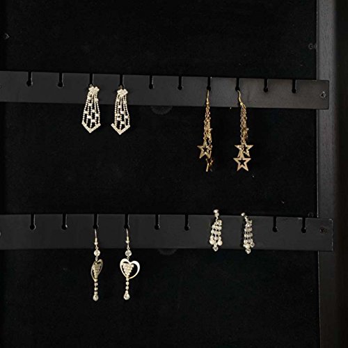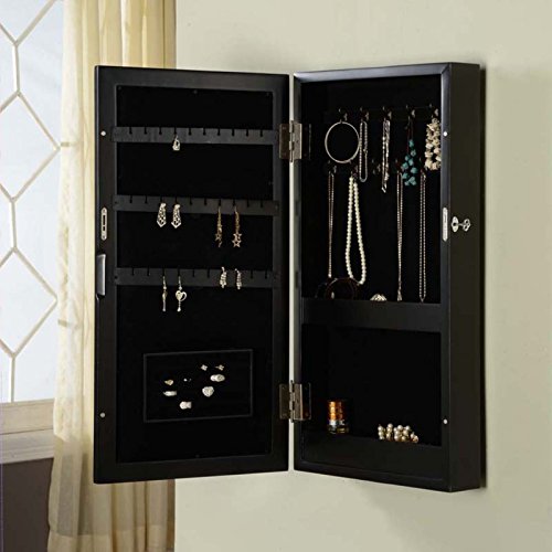 - Equipped with Compartments, Necklace and Earring Hooks, and Ring Holders, the Wall-Mounted Jewelry Armoire Helps Keep You Organized and Clutter Free. Never Lose a Ring, Necklace, or Earring again.