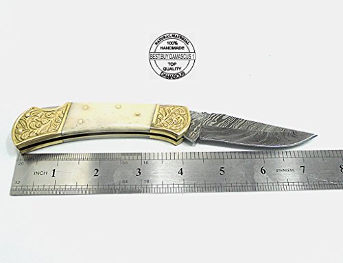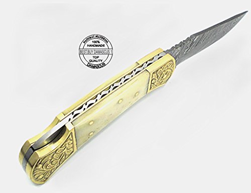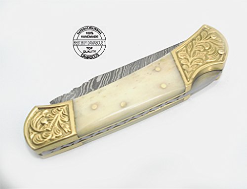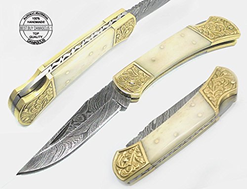 -. Binding : Misc. -. Brand : Best.Buy.Damascus1 -. Color : Camel -. EAN : 0726442477599 -. Feature : Beautifull Camel Bone With Double Bloster ScrimShaw Work 7.6'' Handmade Damascus Steel Folding Pocket Knife / We Make 100% Prime Quality Handmade Damascus Steel Folding Pocket Knives The blade is composed by forge welding and hammer folding 1095 & 15N20 (High & Low Carbon Steel / Our Pocket Knife Feels Great In Your Hand and Pocket ! Great For Personal Use, Or A Fine Gift Best.Buy.Damascus1 Knives The Collection You Will Be Proud Of And Beautifull ScrimShaw Art Work and featuring detailed file worked On back Edge / We Make 100% Prime Quality Cow Skin Brown Leather Sheath / We Aim To Give Our Customers 100% Satisfaction If you Not Satisfied With Our products Just You Return This Item Within 15 Days without Asking Any Questions We Give You 100% Full Refund -. IsAutographed : 0 -. IsMemorabilia : 0 -. Label : BBD -. LegalDisclaimer : You Must Read Before Buy Our Products Thanks We are not responsible for any injuries associated with the use of our tools. Our products are intended for legal use only by responsible buyers. Therefore, we will not sell our products to anyone under the age of 18. Before bidding please check your country laws as some countries Custom don't allow this. If your purchase is held by Custom Authorities in your country/State we will not be responsible for that and no refund will be issued -. Manufacturer : BBD -. PackageQuantity : 1 -. ProductGroup : Sports -. ProductTypeName : SPORTING_GOODS -. Publisher : BBD -. Size : 7.6" Small -. Studio : BBD -. Title : Beautifull Camel Bone with Double Bloster Scrimshaw Work 7.6'' Handmade Damascus Steel Folding Pocket Knife -. UPC : 726442477599