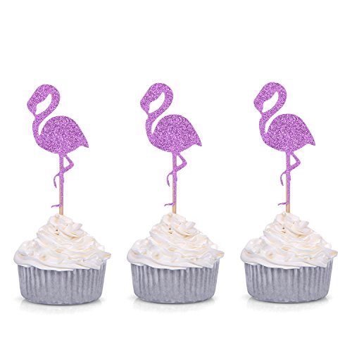 Set of 24 Glitter Flamingo Cupcake Toppers Summer Tropical Party Decors - by Giuffi