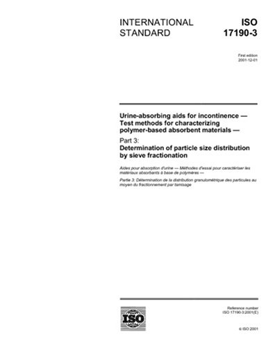 ISO 17190-3:2001, Urine-absorbing aids for incontinence - Test methods for characterizing polymer-based absorbent materials - Part 3: Determination of particle size distribution by sieve fractionation
