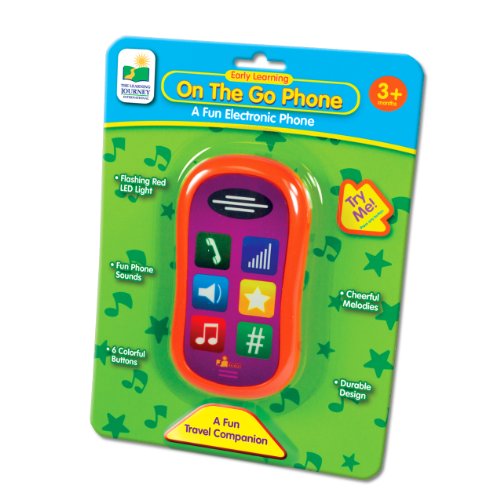 -. Binding : Toy -. Brand : The Learning Journey -. EAN : 0097874902738 -. Feature : Your little one will chat away with the On The Go Phone. When they simply press the buttons on the phone, kids will be rewarded with fun lights and sounds / On the Go Phone encourages role play and imagination as well as exercise for coordination. Soon they will be talking just like Mom and Dad! / Winner Creative Child Award Top Travel Fun of the Year 2014 / Requires 3 button cell batteries (included) / For ages 3 months and up / Pre-programmed melodies / Light-up LED with Rattle Beads / Introduces the world of music / Sensory activities / Stimulates tactile/motor skills -. IsAdultProduct : 0 -. Label : The Learning Journey International -. Manufacturer : The Learning Journey International -. Model : 519424 -. MPN : 519424 -. PackageQuantity : 1 -. PartNumber : 519424 -. ProductGroup : Toy -. ProductTypeName : TOYS_AND_GAMES -. Publisher : The Learning Journey International -. Studio : The Learning Journey International -. Title : The Learning Journey On The Go Phone -. UPC : 097874902738 -. Warranty : 90 day warranty against manufacturer defects