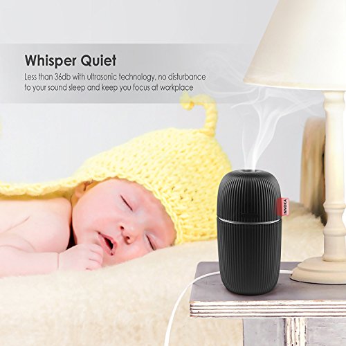 Water Leakage Protection: Unique design to prevent water leakage within 90 degrees falling range, perfect to use in car or room. Silent in use: Ultrasonic humidifier uses high-frequency ultrasonic vibrations to evaporate the water which makes it significantly quiet; Less than 36db which is perfect companion when you are sleeping or working long hours in front of your laptop/PC