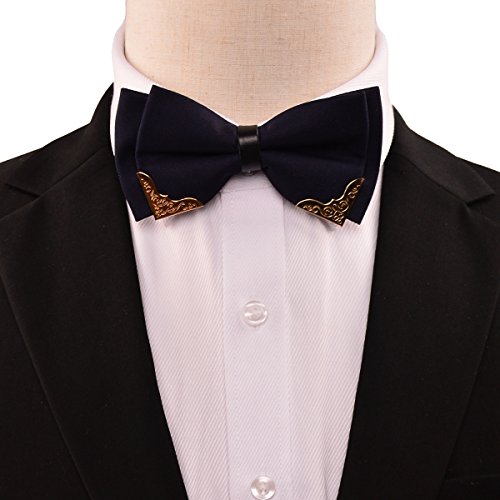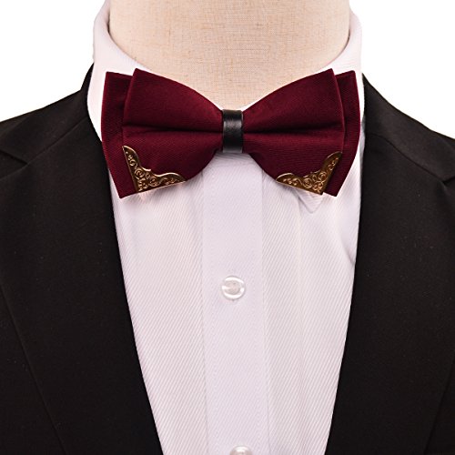 Product Description(1) High Quality Men's Two Layers Pre-tied Bow Ties, with gold metal edge(2) Material: Polyester Silk PU Leather Gold Metal(3) Size: Approx 4.72 inches * Height : 2.36 inches(4) Length of band: Adjustable( 9 - 17.8 inch neck size ) (5) A perfect compliment for any group, wedding party or holiday event0
