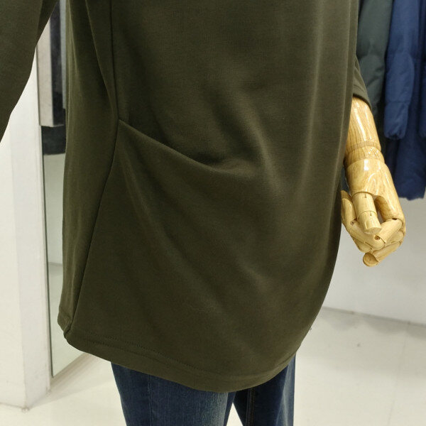 신축성이 가미되어 편안한 착용감과 함께 기본 루즈핏의 힙을 덮어주는 기장감이 슬림해보이는 상체라인을 만들어줍니다