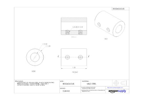 Climax Part RC-050 Mild Steel, Black Oxide Plating Rigid Coupling, 1/2 inch bore, 1 inch OD, 1 1/2 inch length, 1/4-20 x 1/4 Set Screw