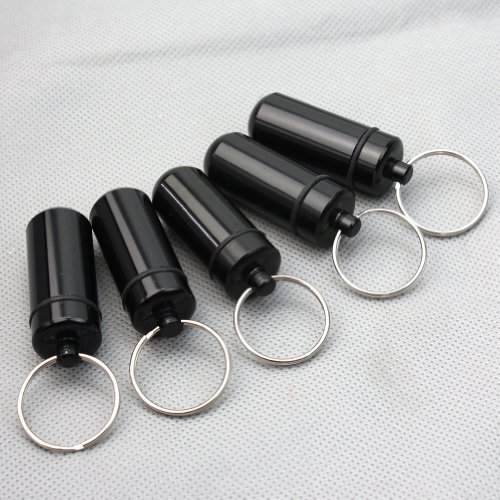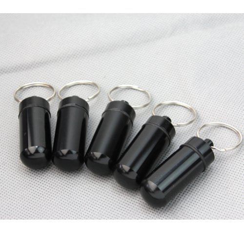 New 5 Pcs Black Waterproof Aluminum Pill Box Case Drug Holder Keychain Container