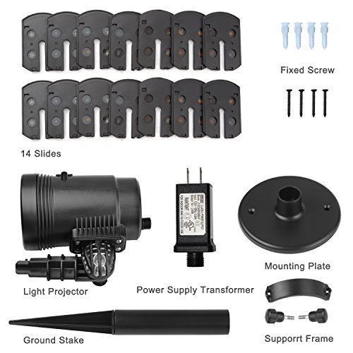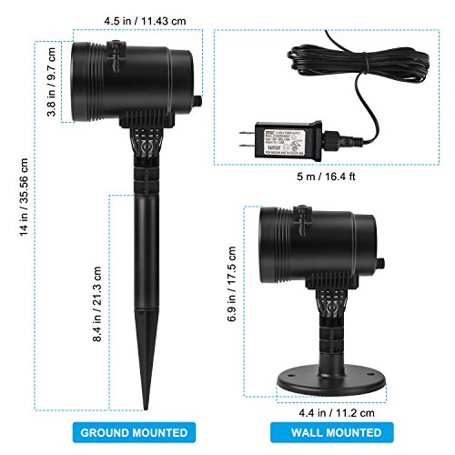 --TIMER FOUNCTION & MULTIPLE INSTALLATION: With timer feature, 6 hours on, 18 hours off, totally hassle-free. It can be hanged on the wall or insert it into the ground. This LED projector light could cover 9m²- 25m² area indoor and outdoor.