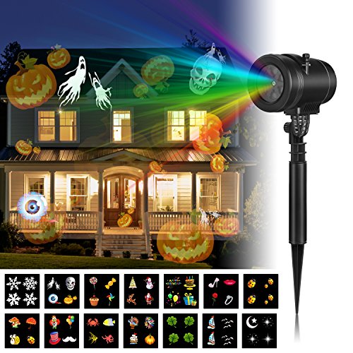 Christmas Led Projector Lights, Goutoday Newest Version 14 Slides Bright Waterproof Landscape Led Projector Spotlight Show for Halloween, Holiday, Garden, Children Birthday Party Decoration