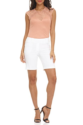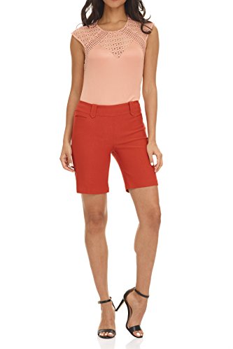 These Perfection office shorts have the perfect longer, polished length for more coverage. Our 8.5" inseam is great for a slimming look, and feels totally comfortable and chic, for the office, dinner, or casual day wear. Featuring our famous contour waistband with hidden elastic, these pull-on shorts (no zipper, no buttons) as sure to be your most comfortable and favorite shorts this season. With real front pockets, faux back pockets with buttons, and belt loops. Details include seamed waistband, small slits at the side hem, and topstitching throughout.