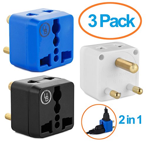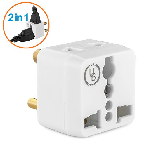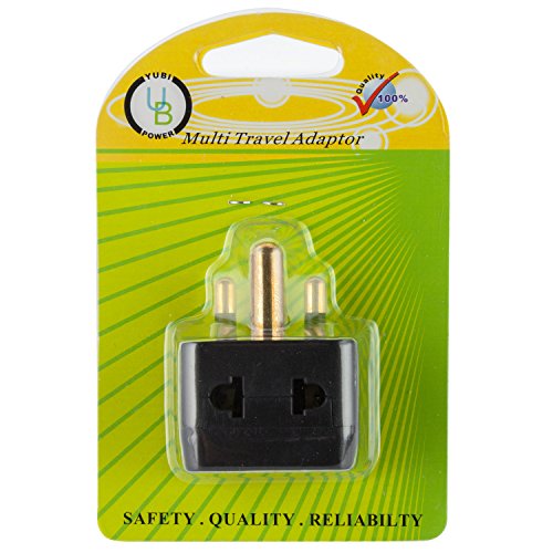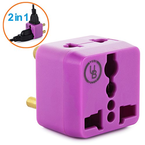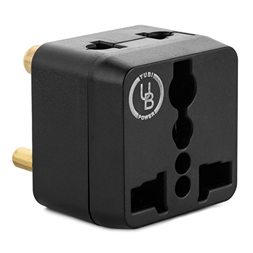 Yubi Power 2 in 1 Universal Travel Adapter with 2 Universal Outlets - Built in Surge Protector - Black - Type D This Yubi Power travel plug adapter has 2 universal outlets that allow you to plug in most plug types from around the world, excluding the larger South African type M.