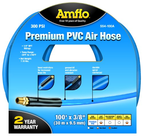 Amflo 554-100A Blue 300 PSI Premium PVC Air Hose 3/8" x 100' With 1/4" MNPT End Fittings And Bend Restrictors