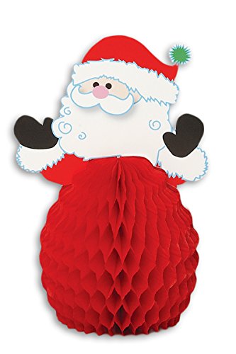 Studio : Unique Party Favors Publisher : Unique Party Favors Binding : Kitchen Product Description Make guests feel like they're in the North Pole by decorating with these Mini Santa Christmas Centerpiece Decorations! Designed to look just like Santa Claus, complete with his thick white beard and big round belly, these table centerpieces will make a merry addition to any Christmas party or holiday party. Arrange these honeycomb decorations along the center of the dinner table to instantly create a holly jolly table setting. Or, display them at the kid's table to delight youngsters when it's time for a holiday meal. 0