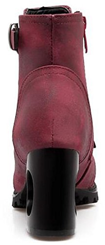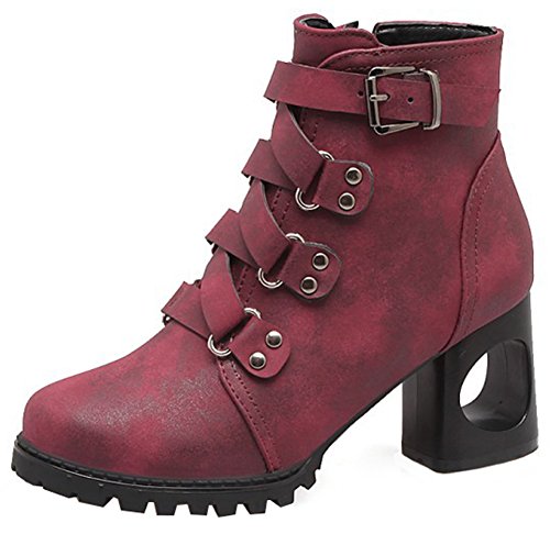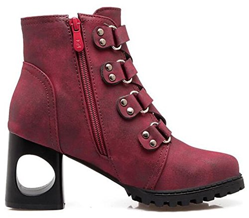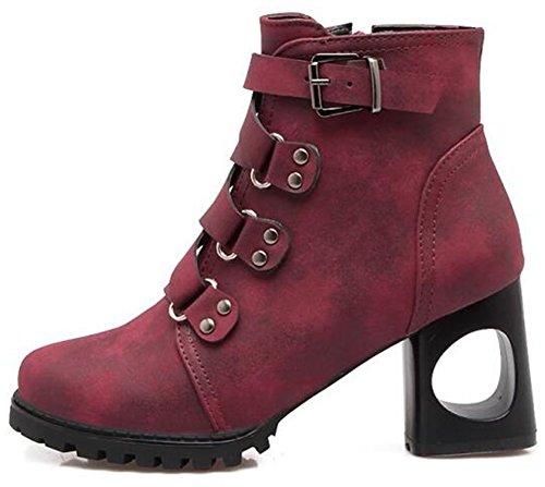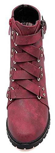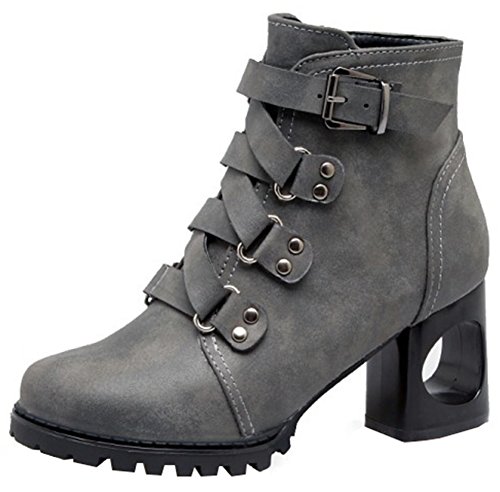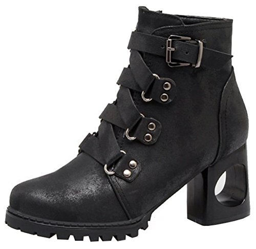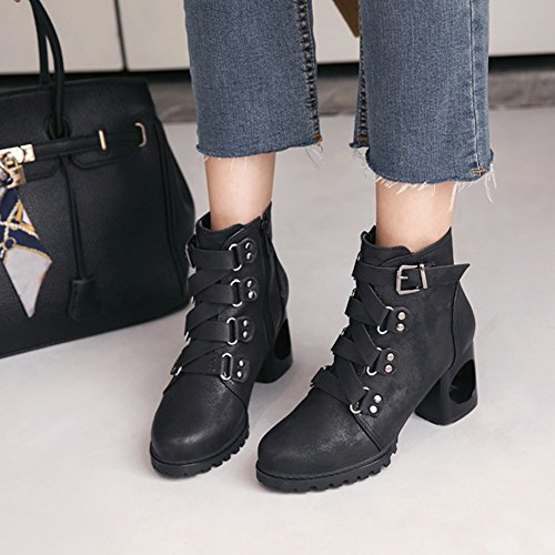 (Mofri)/Women's/Boots/DIRECT FROM USA/Mofri Women's Retro Cross Strap Side Zipper Ankle Booties Round Toe Cut-Out Block High Heel Sho...