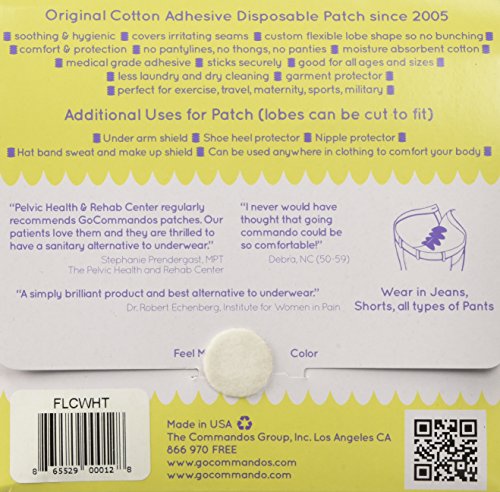 Studio : GoCommandos Publisher : GoCommandos Binding : Health and Beauty Product Description Join the Panty Free Revolution! Soothing, premium cotton, medical-grade adhesive-backed patch for secure protection in all jeans, pants, shorts, leggings instead of underwear. Medically recommended, covers irritating seams, eliminates panty lines and thongs. 0