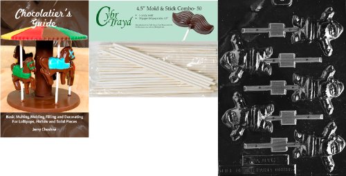 Cybrtrayd 'Chubby Waving Santa Lolly' Christmas Chocolate Candy Mold with 50 4.5-Inch Lollipop Sticks and Chocolatier's Guide