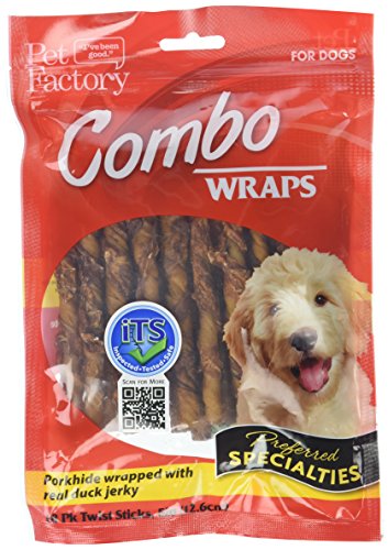 -. Title : Pet Factory Pork Hide Twist Sticks Wrapped with Duck Meat Chews for Dogs (18 Pack), Small/5"