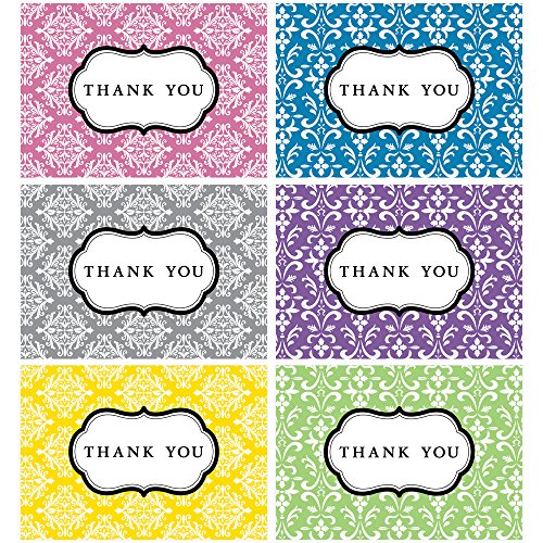 -. Title : 60 Postcards - Damask Thank You - 6 Different Colors