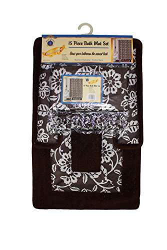 -. Feature : 15 Piece Bathroom Set-Edna, Bath mat / Conture rug / Shower curtian / 12 Plastic shower rings covered with fabric