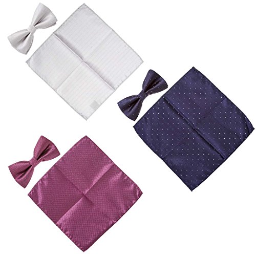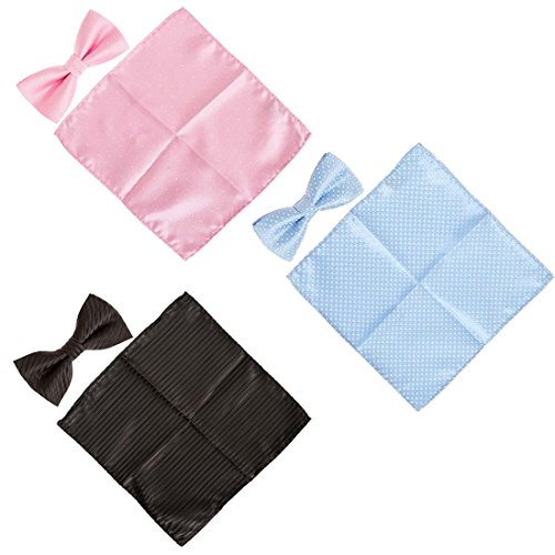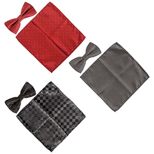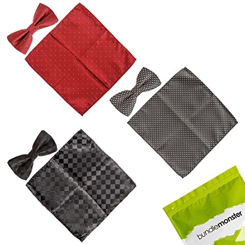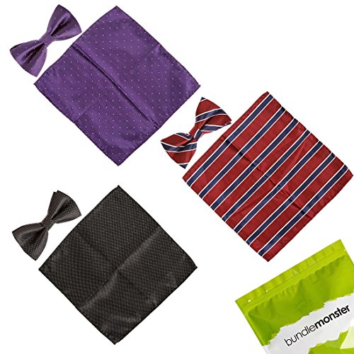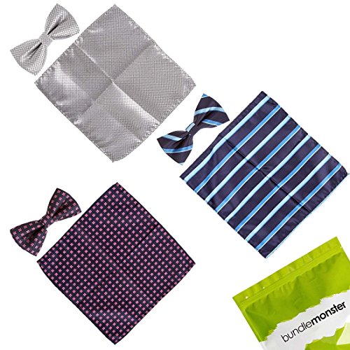 -. Binding : Apparel -. Brand : b.m.c -. Department : mens -. Feature : Choose from 7 sets. Each comes with 3 matching sets of patterned bowties and fabric pocket squares. / Material: Handmade with 100 percent polyester. Some designs include shimmering fabric. / Bow Size: 4.8 in (L) X 2.4 in (W). These are pre-tied with an adjustable strap (up to 19 in.). / Squares measure 8.5 in (L) X 8.5 in (W) - (22 cm X 22 cm). / The perfect suit accessory for parties, events, and special occasions. -. Label : Bundle Monster -. Manufacturer : Bundle Monster -. NumberOfItems : 6 -. ProductGroup : Apparel -. ProductTypeName : ACCESSORY -. Publisher : Bundle Monster -. Studio : Bundle Monster -. Title : BMC Mens 6pc Mixed Design Pre-Tied Bowtie Pocket Square Fashion Suit Accessories