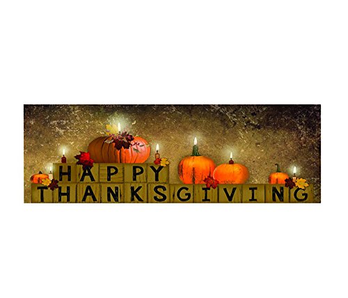 Happy Thankgiving Block Harvest LED Light Up 16 x 6 Inch Canvas Hanging Wall Plaque