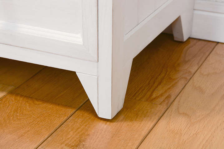 ●たっぷり収納できる、シンプルなアンティーク調テレビ台。ブラウンの引出しがアクセント。