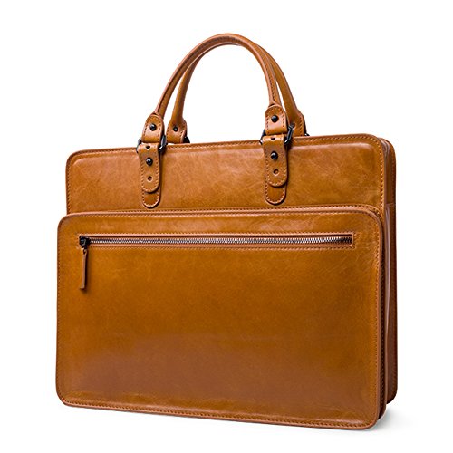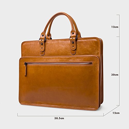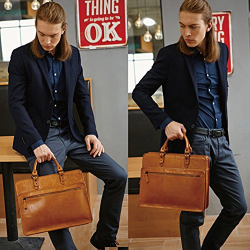 -. Title : YAAGLE Mens Large Casual Genuine Real Cowhide Leather Office Document File Organizer Portable Business Briefcase Conference Top-handle Handbag 15-inch Laptop Case Book Bag