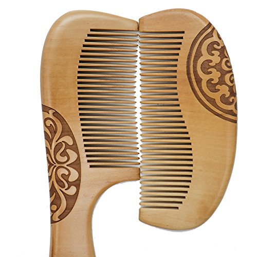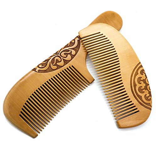Buorsa 2Pcs Handmade Peach Wood Comb Anti-Static Hair Care Comb Set, For Women's All Types of Hair