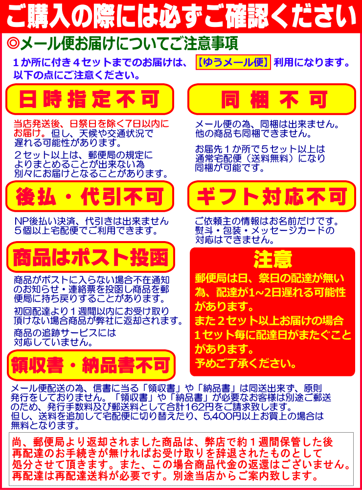 その他■メール便のため同梱できませんが、5個以上宅配便【送料無料】となる場合は同梱可能です。