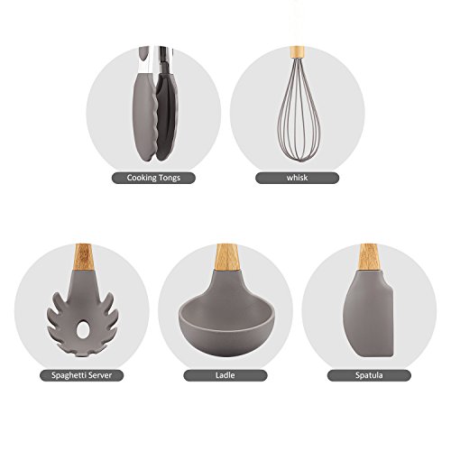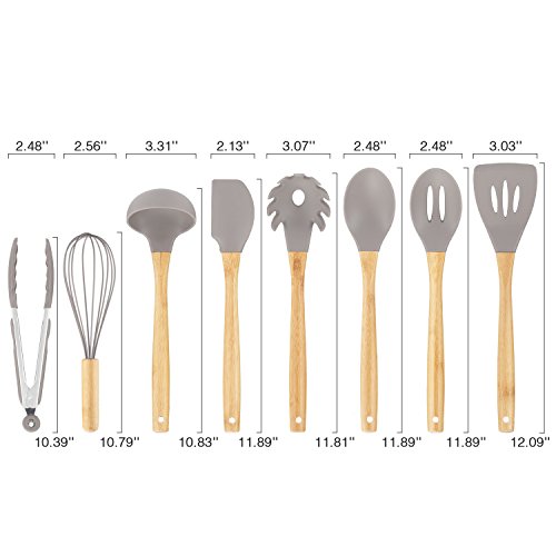 NEXGADGET Premium Silicone Kitchen Utensils 9-Piece Cooking Utensils Set with Bamboo Wood Handles for Nonstick Cookware, Utensils Holder Included