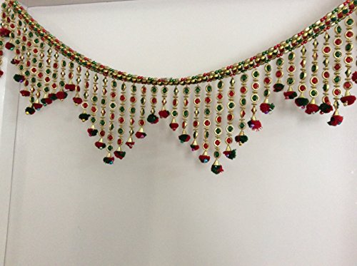 -. Binding : Kitchen -. Brand : Khushi's World -. Color : Gold with red and green beads -. Feature : Fits the standard size of door - toran is 42" / Washing instructions : hand wash with mild soap / handmade by expert craftsmen / Comes with Beautiful Goddess Laxmi Sticker for Diwali Puja -. IsAutographed : 0 -. Label : Khushi's World -. Manufacturer : Khushi's World -. Model : KWT002 -. PackageQuantity : 1 -. ProductGroup : Home -. ProductTypeName : HOME -. Publisher : Khushi's World -. Size : Length 36" X width 6" weighs 280 gms or 10 ounces -. Studio : Khushi's World -. Title : Christmas decor Toran/Door Valance Diwali Christmas Decorations Gift packing . Comes with Beautiful Goddess Laxmi Sticker for Diwali Puja
