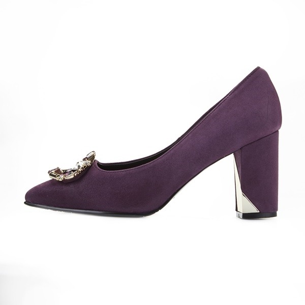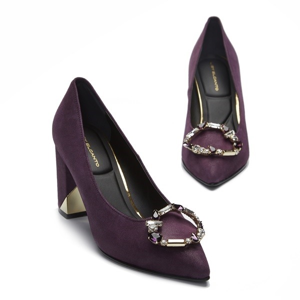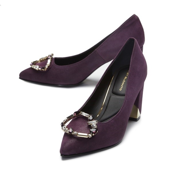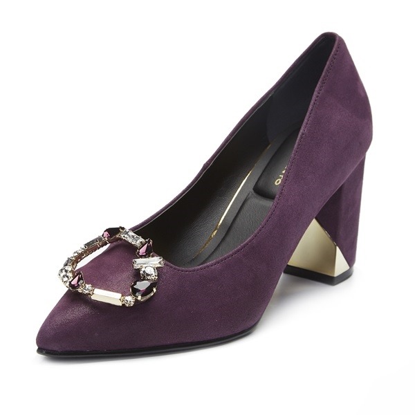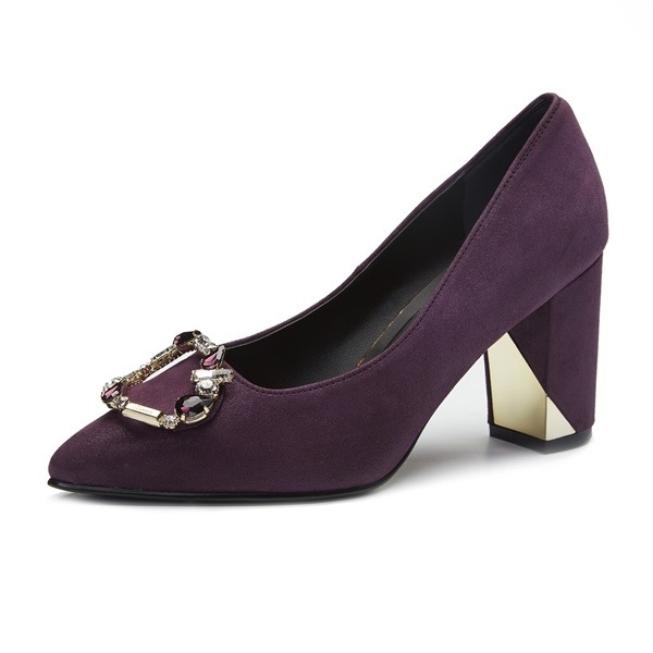 여성 큐빅장식 8CM와이드굽 쿠션깔창 드레스슈즈