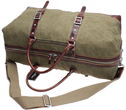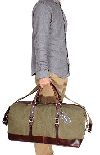 -. Feature : ✔High Quality Material-Double Thick Large Zippers,Thick Italy Imported Genuine Cow leather,Unique Solid Hard Rivet,Thick Heavy Duty Canvas,Heavy Duty Cotton Linging,Thick Genuine Leather Handle. / ✔Professional Handcrift-Strong Double Trim Stitching,Huge Machine Pressure Cast The Hard Rivets,can be last for a long time,The Whole Bag Material is Best Parts Collection,The Bag is Very Comfortable,and Strong Enough to Bear More Weight . / ✔Large Size - The Product Dimensions is 21In L x9in W x 14in H , The Height of Handle : 7 Inch / ✔Plenty Roomy For 3-5 days Travel-It's Very Spacious and It Has Plenty of Room to Take Your Clothes,Along with Charger, Cellphones and Other Small Electronics Etc.It Fit for 6 Pairs of Jeans, 4-5 Shirts, Underwear, and Socks Easily. / ✔Multi-Functional-This is a Stylist and Functional Bag,It Can Be As Carry On Travel Bag,Weekend Bag for Men,Travel Tote Bag,Weekender Bag,Business Lage Bag,Overnight Duffel Bag,Travel Gear Bag,Sports Gym Bag;A wonderful and practical gift or present for Valentine's Day,Father's Day,Teachers' Day,Thanksgiving, Christmas, Birthday or almost any other occasion.