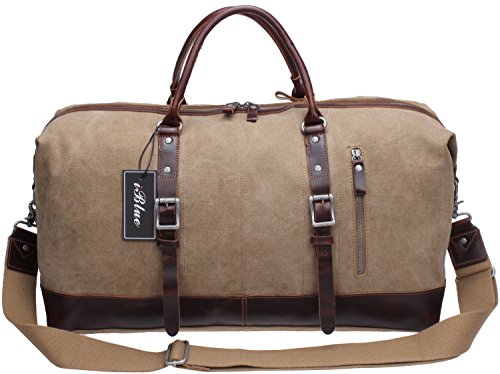 -. Title : Iblue Large Weekend Travel Duffels Canvas Leather Gym Totes Lage Gear Bags 21 Inch #B190
