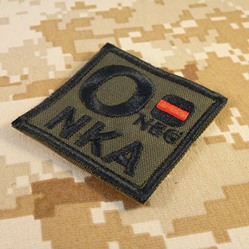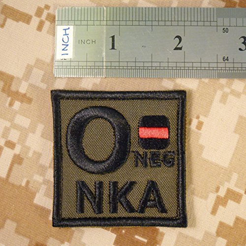Olive Drab O NEG O- NKA Blood Type OD Green Embroidered Fastener Patch