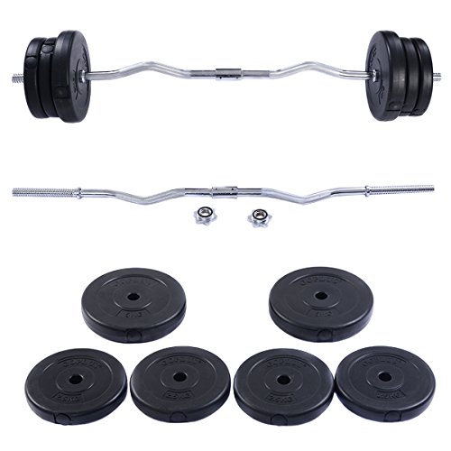 Specifications Color: Curl Bar :Silvery ;Plates: Black Material: Threaded Handles: Iron Plates: Plastic(Include Sand And Cement) Spinlock Collars :Iron Bar Size: 47' X 0.98'(L X Diameter) Plate Diameter: 9.8'(5 Kg); 8.3'(2.5 Kg)