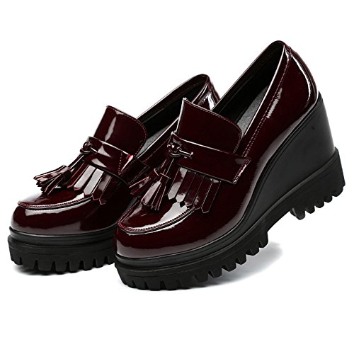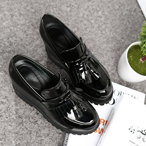 (Btrada)/Women's/Lace-Ups/DIRECT FROM USA/Btrada Womens Sweet Tassel High Wedge Heel Oxford-Anti Slip Round Toe Thick Bottom Casual Oxfor...