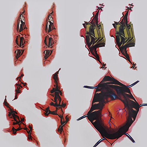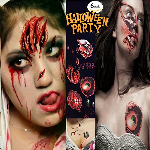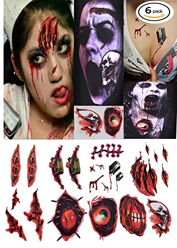 Package included: 6 Pack Halloween scar makeup (12 pieces of wound tattoo stickers )