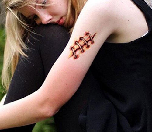 The Perfect Halloween scar temporary tattoo are great accessories to match your party costume, especially in make up party. You can stick tattoos at neck, arm, waist, chest, or anywhere of body. Let's being beautiful tattoos guys!