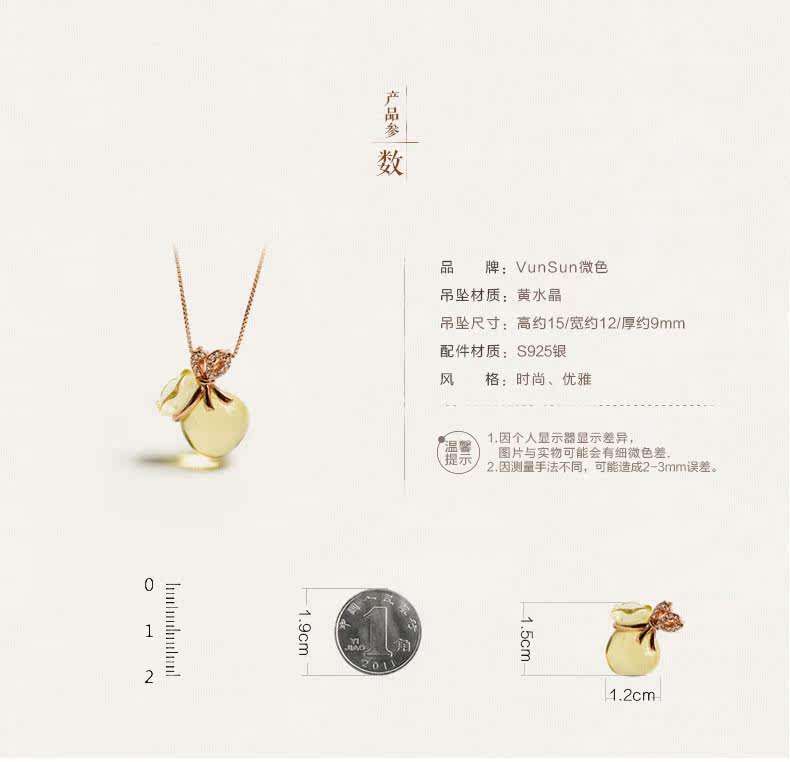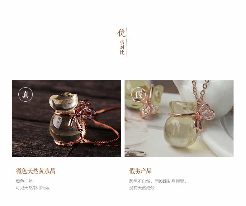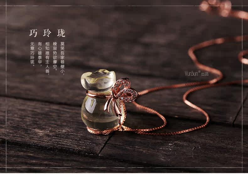 天然黄水晶钱袋吊坠女款s925银饰本命年项链礼物项坠饰品