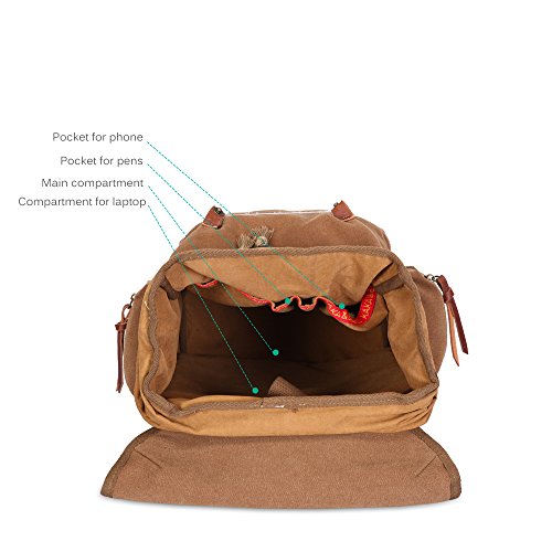 -. Feature : Mens backpacks Cotton Canvas Stitching leather with Large Capacity Approx Dimensions:10.2*15.7*5.9 inches(L*H*W) / Hiking backpacks for outdoor activities the large capacity bag with multifunction design is the unique interpretation of fashion / Vintage backpacks style 100% pure cotton canvas backpack,durable and fashionable Highly protective being able to be tightened and having a very good close flap / Travel Backpack with multifunction design interior: Cell Phone Pocket, Interior Zipper Pocket; credential pocket,Tablet pocket,compartment for laptop(from 14 to 15 inch) / Large Capacity Canvas bags with adjustment buckles durable and colorfast economize your carrying effort with Simple design and well sewn craftsmanship