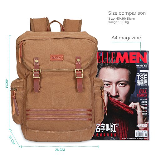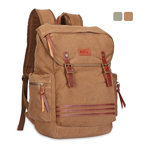 -. Title : KAKA® Vintage Canvas Backpack, Men Casual Canvas Leather Travel Backpack ,Rucksack, Bookbag, Satchel Hiking Daypacks For Outdoor/Hiking/School