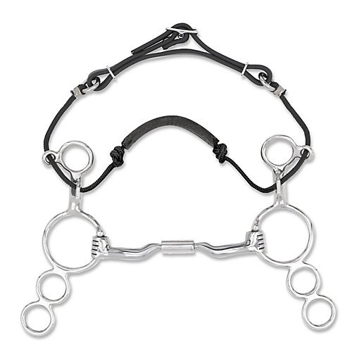ReleaseDate : 2011-10-17 Studio : Myler Publisher : Myler Binding : Sports Product Description Stainless Steel 3-Ring Combination Bit - 6" Shank with Sweet Iron Low Port Comfort Snaffle (MB 04) Copper Inlay Mouth. This mouthpiece is made of polished Sweet Iron which naturally oxidizes. How it works: the 3-ring combination bit uses ?ve di?erent pressure points to disperse rein pressure. The noseband and chin strap are connected through the purchase; when the reins are engaged, the horse ?rst feels the nose, chin and poll pressure before he feels the mouthpiece. The mouthpiece can slide 1" before reaching the stop, where it will engage. The overall e?ect is to give the horse several opportunities to respond to the rider’s rein signals, plus disperse the rein pressure over multiple pressure points rather than just the tongue or bars. Select the rein position most suitable for your hands. About the mouthpiece: the 04 mouthpiece is similar to the 02 in that it will rotate on the tongue and apply tongue pressure; however, it has a slight (¼") port that allows the horse to swallow when he is moving forward, relaxed. This port introduces some tongue relief to the horse. The bars of the bit are curved so the bit wraps the bars and lips of the horse’s mouth instead of pinching them when it rotates on to the tongue it. The curve makes more room for the horse’s tongue under the bit. The barrel in the center is the same width as the center piece on a traditional three-piece mouthpiece so applies approximately the same pressure on the tongue. The 04 provides an excellent transition from Level One to Level Two. It’s similar to the 02, but with a ¼" port that introduces tongue relief. Suitable for a wide range of horses: green horses, experienced horses entering the Myler System, horses that have been ridden exclusively in a single-jointed mouthpiece, or re-schooling horses that have not been ridden for a while. Also an excellent schooling bit for horses competing in dressage. 0