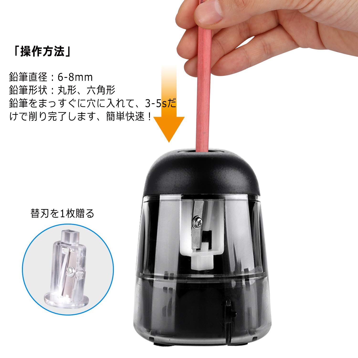 ★セット内容:電動鉛筆削り器1台+切替刃1個