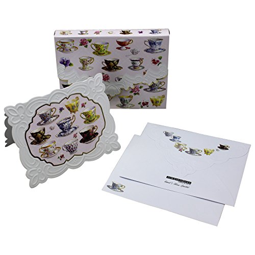 (Carol's Rose Garden Collection)/Stationery Party Supplies/Stationery/DIRECT FROM USA/Tea Cups Embossed Set of 10 Blank Note Cards, Envelopes, and Mini Portfolio Pouch, Designed by ...