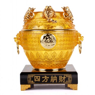 聚宝盆,顾名思义,可招财聚气,生旺家宅风水,招财聚财能使财富生生不息,和各种瑞兽放在一起,互补互利,将吉祥物的力量发挥淋漓尽致,是难得的家居装饰摆件和吉祥送礼佳品。