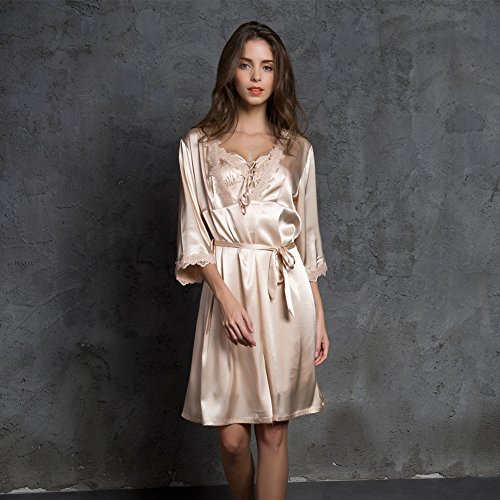 -. Feature : ❀ MATERIAL - 90% Rayon, 10% polyester,imitation silk fashion new fabric, exquisite craftsmanship, silky smooth. / ❀ LACE EMBROIDERY - Delicate Lace Trims Along the Neckline and cuff of the Sleep Dress Makes it rather flattering. / ❀ STRAPS DESIGN - The size of the pajamas chest can be adjusted, shrunk and stretched by straps,Waist comes with a belt to tie easily. / ❀ 2 PIECE SET - this set includes 1 chemise dress and 1 matching satin robe,Great as a loungewear and sleepwear. / ❀ NOTE - The Size of this pajamas is Smaller than the Standard Size of the United States, The CN M = US S;CN L = US M;CN XL = US L.