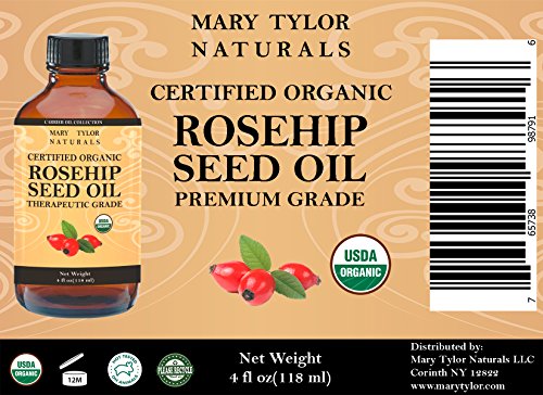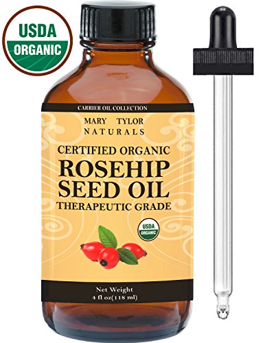Mary Tylor Naturals Organic Rosehip Seed Oil Large 4 oz, USDA Certified, Cold Pressed, Natural Moisturizer For Face Skin Hair and Nails, Therapeutic Grade, 100% Pure Rose Hip oil