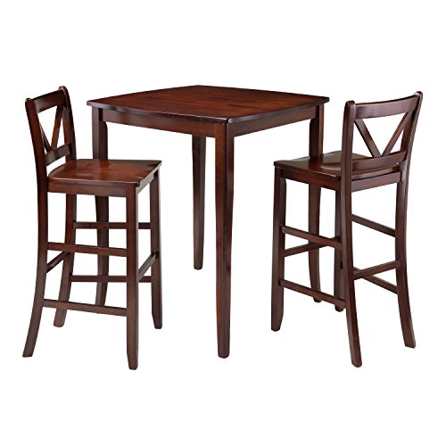 -. Title : Winsome 3-Piece Inglewood High Table with 2 Bar V-Back Stools, Brown